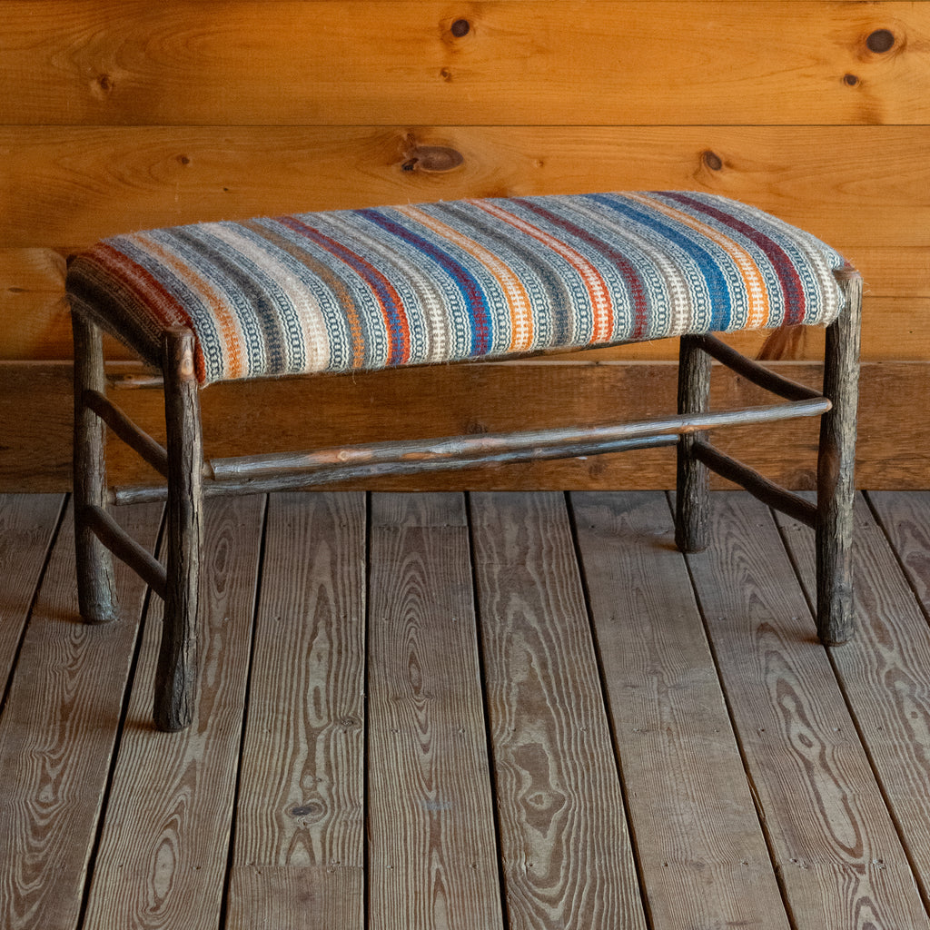Handcrafted in the Adirondacks, the Winslow Bench pairs a sturdy hickory frame with wool kilim upholstery for a look that’s both rustic and timeless. Whether situated in your entryway, living room, or bedroom, it's sure to bring warmth to your home.